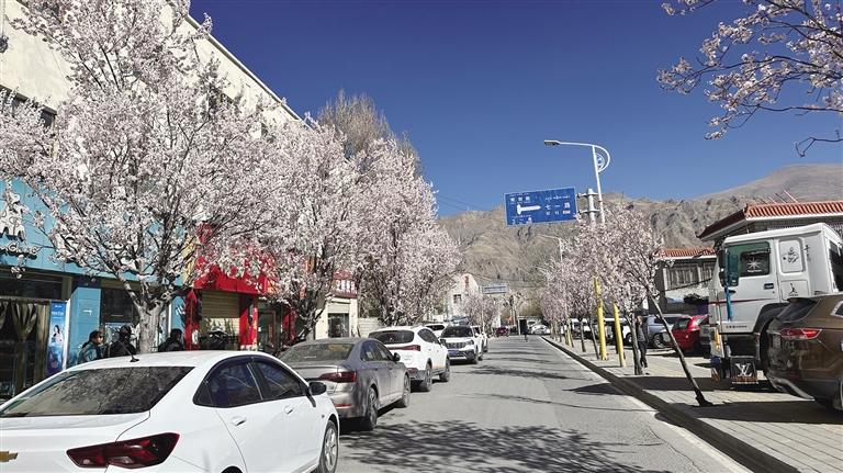 暮春时节,随着一树树繁花次第绽放,拉萨春的气息也愈发浓烈。这个浪漫的季节也是游玩赏花的好时候。布达拉宫脚下的桃花粉白一片,次角林的古桃树早已灿若云霞,与布达拉宫的桃花遥遥相对。高原慷慨的阳光将花瓣照得透明,春风拂过,闪烁微光的花瓣轻轻摇曳,无一不在诉说着春日的美好。