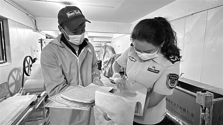 执法人员正在对藏面加工小作坊进行检查。资料图