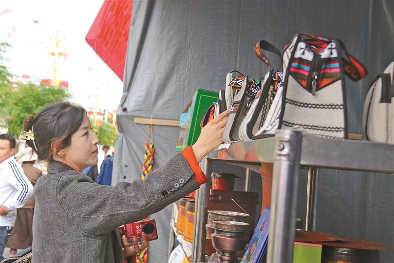 图为曲松县农产品展销活动中,具有当地特色的手工编织产品深受青睐。本报记者 丹增平措 摄