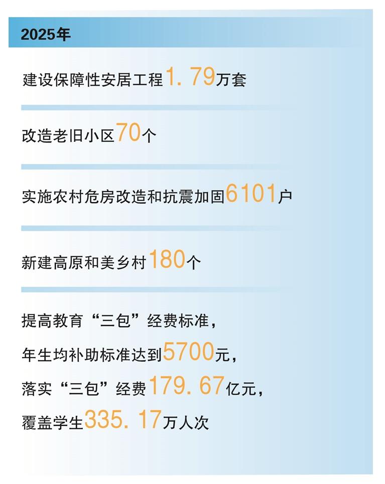 今年,自治区政府工作报告提出,将安排资金136亿元,办好34项民生实事。西藏各族群众对美好生活的向往加速实现,人民生活幸福正成为新时代、新征程下建设社会主义现代化新西藏最温暖的底色。