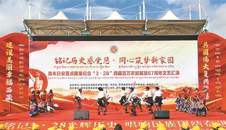 图⑤:森布日安置点开展纪念“3·28”西藏百万农奴解放67周年文艺汇演。