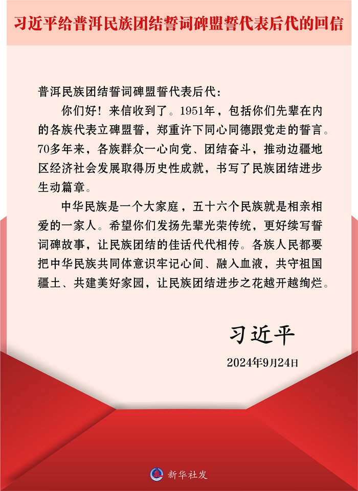 习近平回信勉励普洱民族团结誓词碑盟誓代表后代