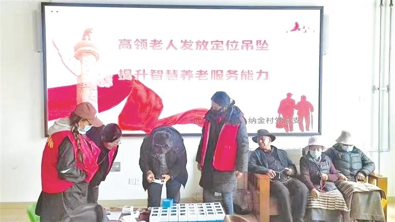 图为城关区为高龄老人发放定位吊坠。