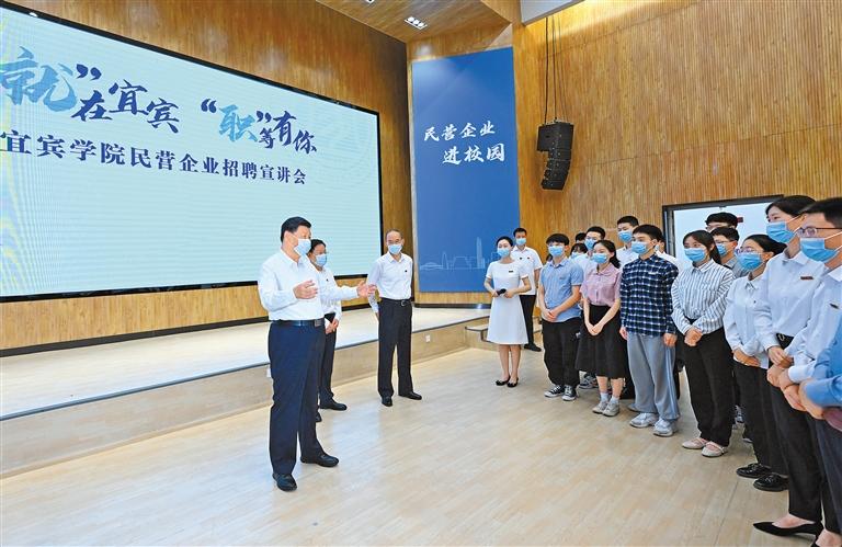 今年我国高校毕业生预计达1076万人,同比增加167万人,创历史新高。习近平十分关心高校毕业生就业情况,来到宜宾学院考察调研,察看毕业生创新创业代表作品展示,了解学校开展就业创业指导服务工作。学校招聘大厅内,正在举行企业招聘宣讲会,习近平向教师、学生、企业负责人了解企业招工的需求和毕业生签约率等情况。习近平强调,党中央高度重视高校毕业生就业,采取了一系列政策措施。当前正是高校毕业生就业的关键阶段,要进一步挖掘岗位资源,做实做细就业指导服务,学校、企业和有关部门要抓好学生就业签约落实工作,尤其要把脱贫家庭、低保家庭、零就业家庭以及有残疾的、较长时间未就业的高校毕业生作为重点帮扶对象。习近平对同学们说,幸福生活是靠劳动创造的,大家要保持平实之心,客观看待个人条件和社会需求,从实际出发选择职业和工作岗位,热爱劳动,脚踏实地,在实践中一步步成长起来。他勉励同学们自觉践行社会主义核心价值观,努力做到德智体美劳全面发展。