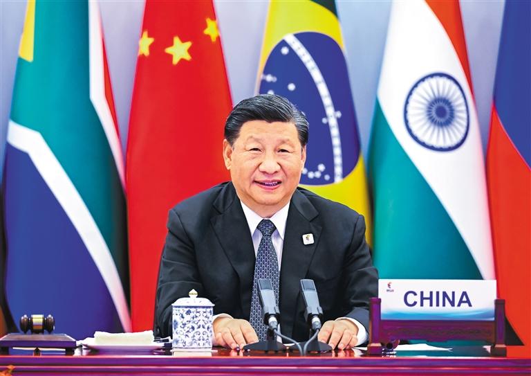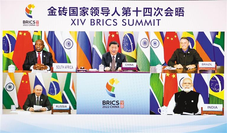 6月23日晚,国家主席习近平在北京以视频方式主持金砖国家领导人第十四次会晤并发表题为《构建高质量伙伴关系 开启金砖合作新征程》的重要讲话。