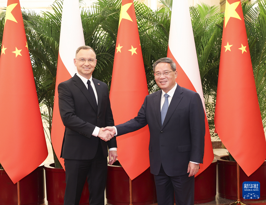 国务院总理李强6月24日上午在北京人民大会堂会见来华进行国事访问的波兰总统杜达。