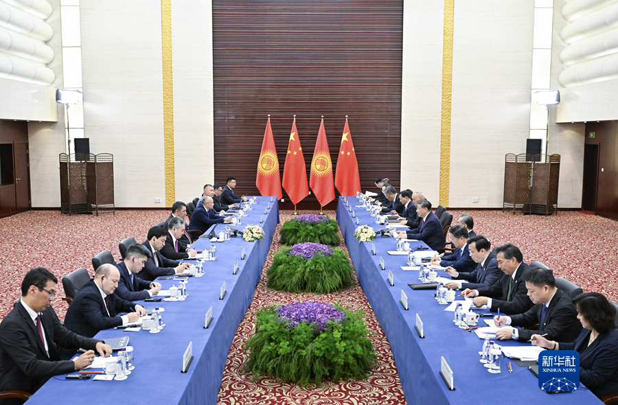 习近平指出,去年5月,我们在西安举行了富有成效的会谈,就中吉关系和两国各领域合作达成许多共识。一年多来,这些共识得到有效落实,中吉合作喜讯频传。亲望亲好,邻望邻好。中方乐见一个稳定发展的吉尔吉斯斯坦,将一如既往坚定支持吉方维护国家独立、主权和领土完整,坚定支持吉方走出一条符合本国国情的发展道路。中方愿同吉方深化发展战略对接,扩大治国理政经验交流,推动全方位互利合作,推进中吉命运共同体建设。