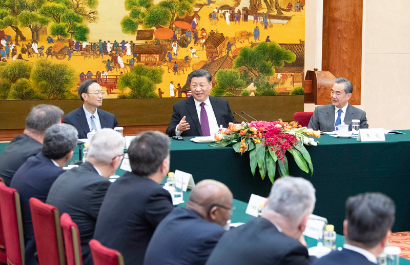国家主席习近平3日在人民大会堂会见出席“2019从都国际论坛”外方嘉宾。
