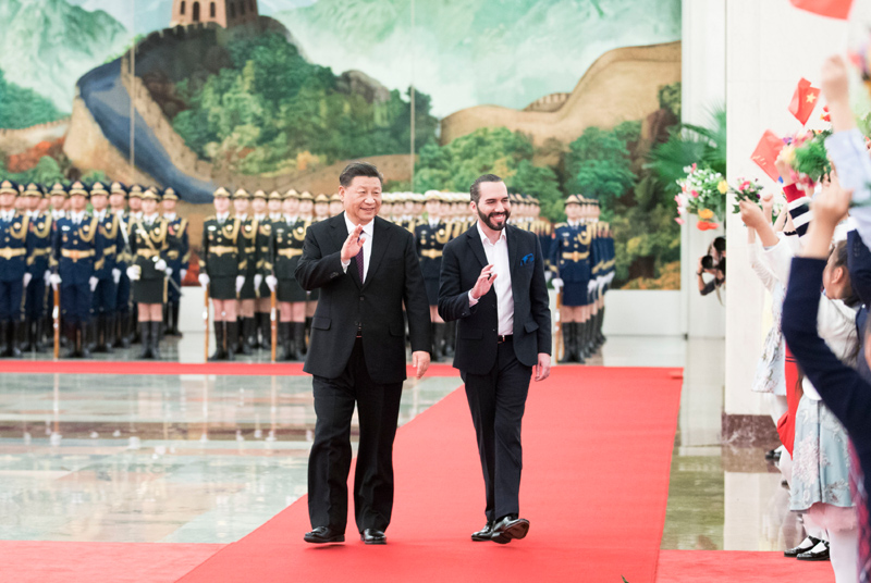 国家主席习近平3日在人民大会堂同萨尔瓦多总统布克尔会谈。