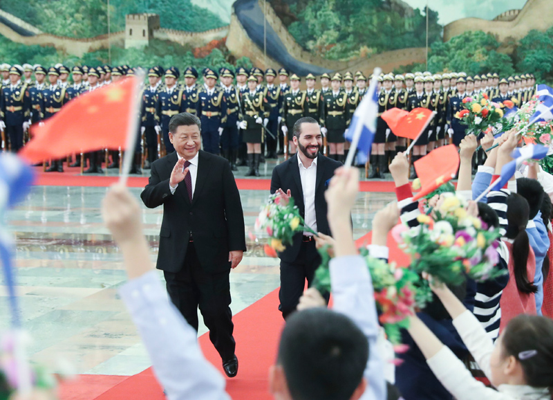 12月3日,国家主席习近平在北京人民大会堂同萨尔瓦多总统布克尔会谈。这是会谈前,习近平在人民大会堂北大厅为布克尔举行欢迎仪式。