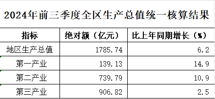 2024年前三季度全区生产总值统一核算结果